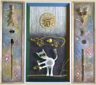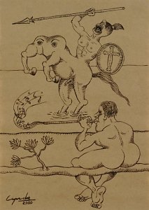 Acompañando a estos nuevos objetos ensamblados, nos presenta Ender Cepeda esta vez, una serie de óleos y acrílicos, donde la sensualidad y esa mitología muy personal del artista se combinan con una imaginación desbordada.